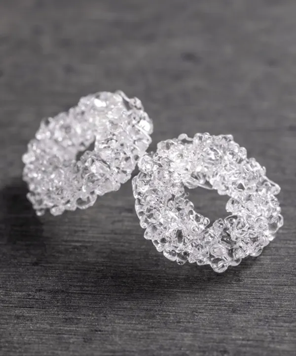 電子部品用光学ガラスの端材をアップサイクルしたガラスアクセサリーで透明感と輝きが特徴です。