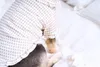 【柔らかで可愛い特別生地のペットパジャマ(茶色)】 サイズはSMLの3サイズからお選びいただけます。 人服と同じ柔らかく肌触りのいい生地を使用し、 デザインの可愛さと着心地の良さを両立◎ さりげないメロー加工で愛犬の可愛さを増幅させます。 さらに過ごしやすさを追求し、 ・愛犬の爪や歯にも破れにくい ・程よい伸縮性で脱ぎ着させやすい ・腕や肩が抜けにくい設計 ・洗濯取り扱いがしやすい 等のこだわりを実現しています。 とろけるような柔らかな肌触りと可愛さで、 ペットにとっても心地よいパジャマを目指しました! 透け感:なし 裏地:なし 伸縮性:あり 光沢感:あり 生地の厚さ:普通 わんちゃんが着て可愛く、 一緒に着ても可愛い、 特別な部屋着で温かく幸せなおうち時間を過ごせる ルームウェアとなっています。 サイズ表 S 首周り 20 胴回り 33 着丈 22 体重 1.5~3.0kg M 首周り 23 胴回り 36 着丈 26 体重 2.5~4.0kg L 首周り 28 胴回り 41 着丈 30 体重 4.0~6.0kg