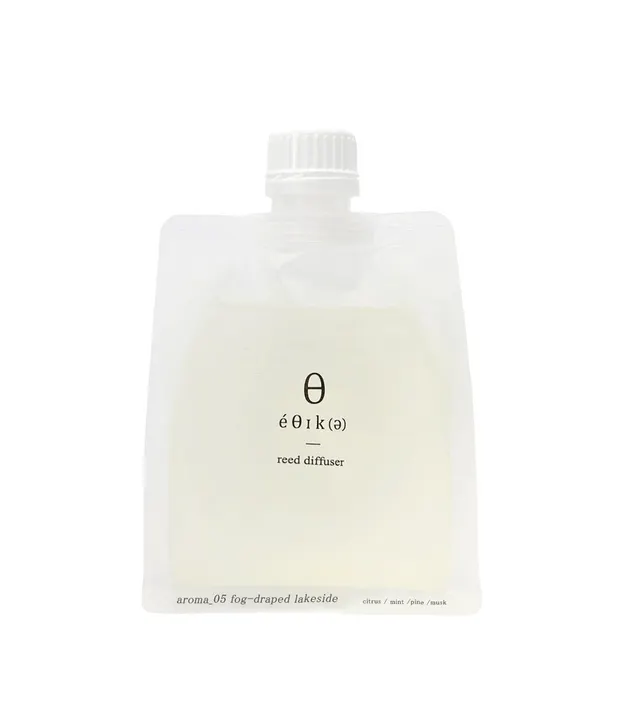ウッドスタンドにリフィルをそのままセットして使う、éθIk(ə) エシカBLACKリードディフーザー、 こちらは付け替え用のリフィル単体の販売となっております。 別売りのリードディフューザーセットの液体が無くなりましたら、こちらのリフィルをウッドスタンドにセットしてご使用ください。 こちらのリフィルのみでは自立したご使用は出来ませんのでご注意ください。 別売りで替えのスティックもございます。 【ご使用方法】 別売りのスタンドにセットし、蓋を外してリードスティックを挿します。スティックが徐々にオイルを吸い上げて、香りが広がります。 リフィルの詰め替え時に液体をこぼしたりする心配が軽減され、ウッドスタンドはそのまま使用し続けられるのでゴミの量の軽減にも繋がります。 こちらのリフィルはマットな質感で、すっきりとしたかっこいいイメージのシリーズ。 自然の力強さを感じるウッディ系の香りイメージの4種類です。 【香り】 ・fog-draped lakeside(aroma_05) パインの甘酸っぱい香りと官能的なムスクの香りをベースに、すっきりとしたシトラスとミントの香りで、霧がたちこめる湖のほとりをイメージ。 ・drive before dawn(aroma_06) 海風のようなオーシャンの香りと官能的なムスクの香りを、アルデヒドの香りによって引き立たせる、日の出前のドライブをイメージした香り。 ・whiskey,cigarettes and jazz(aroma_07) アンバーとシガーのスモーキーな香りに、ジャスミンとバニラの濃厚な甘い香りをベルガモットですっきりとさせた、ウィスキーとジャズを楽しむ大人をイメージ。 ・poker and cocktails(aroma_08) アンバーとパインの香りをベースに、ユーカリとラベンダーのウッディハーバルな香りで、ゆったりと自分の時間を楽しむリラックスした空間をイメージ。