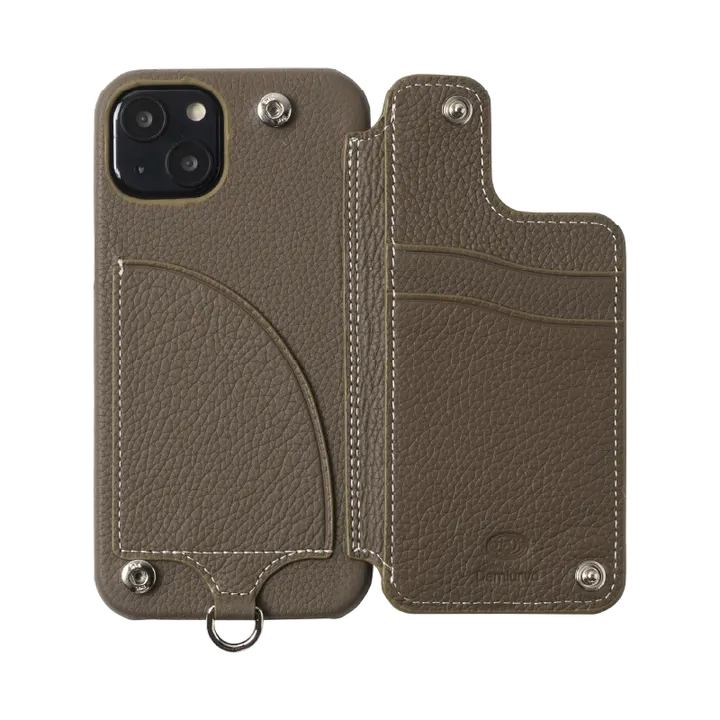2023年9月より弊ブランドはDemiurvo(デミウルーボ)改めDEMIU(デミュウ)に改名いたします。 それに伴い、DEMIUの名を配したブランドネーム・ロゴが採用されます。 一部商品に関しては、Demiurvoとして引き続き販売いたしますが順次モデルチェンジ予定です。 何卒、ご理解のほど宜しくお願い致します。 カラー豊富なカード収納機能つきiPhoneケースPOCHE FLAT(ポシェフラット)。 選び抜かれた上質なフランス産牛革を使用したiPhoneケース。 本革を使用しているため、ひとつひとつとして同じ革がないところも魅力。 思わず目を惹かれるカラーと質感で存在感抜群のアイテムです。 右扉の内側に2段のカードスリットと隠しポケット、左側に収納ポケットを施しカードケースとしての機能を備えた便利なアイテム。 蓋をささえにして横置きできるのでYouTubeやテレビ会議にも便利。 ショルダーなどを付けられるリングが付いているので、別売りのショルダーストラップとのセットや色違いのストラップでコーディネイトするのもおすすめです。 ※iPhone12 miniおよび13miniの背面のカード入れに関してですが左側(ケース装着側)の仕切り部分と、右側の裏ポケットにはカードはお入れいただけません。右側のカード入れにはカード段が1つの仕様となります。ご注意ください。 ※ストラップは別売りです。 ー仕様ー・素材本体:牛革ケース部分:ポリカーボネート金具:ニッケル・重量約65g