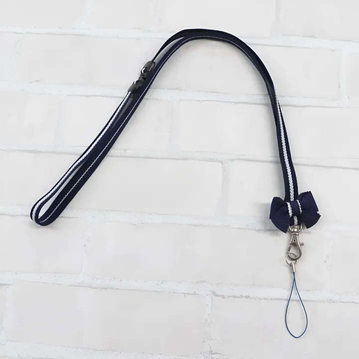 キッズネックストラップ (大事なものは首から下げて安心)安全パーツ付き 同デザイン5本入り リボンネイビー