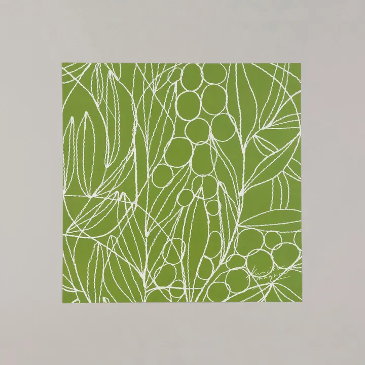 ※フレームは別売りです <デザイナープロフィール > 長野訓子 (kuniko nagano) 刺繍作家。アクセサリーブランドga.la代表。嵯峨美術大学卒業後に銅版画家、テキスタイルデザイナーを経て家業の刺繍業に携わる。植物の有機的なラインを生かした独特の刺繍作品は著名人にも愛され、 2015年のブランド立ち上げ以来、全国で開催される個展やグループ展で作品を発表している。 <About the Paper> 発色の良さと紙の風合いという相反する性質を高いレベルで両立させた高級印刷用紙で、FSC認証※も取得しているヴァンヌーボV-FSの最厚紙を使用。 ※FSC認証とは「森林の管理や伐採が環境や地域社会に配慮して行なわれているかどうか」を評価・認証し、そうした森林に由来する製品(適正管理された森林木材による製品)であることを証明するものです。運営は、NGOであるFSC(Forest Stewardship Council®:森林管理協議会 本部ドイツ)が行っています。 <サイズバリエーション> ・200×200mm ・300×300mm