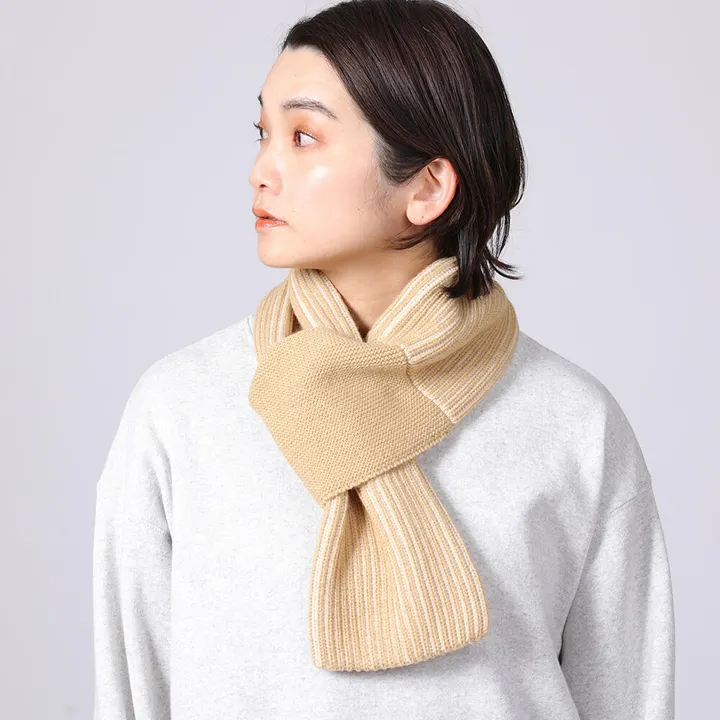 マフラー┃グラデーションカラーのリブミニマフラー BE(ベージュ)