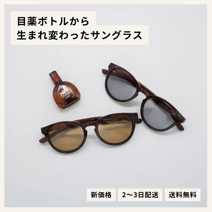 100%目薬ボトルからリサイクルしたサングラス ライトブラウンレンズ