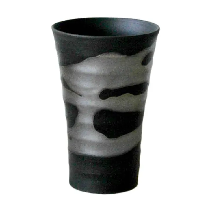 きめ細やかな黒土に金銀の釉薬が映える。 手仕事ならではの薄造りで、持ちやすさは抜群です。 職人の手によって一つ一つ柄杓でかける金銀の釉薬がそれぞれの商品に違った表情を醸し出します。