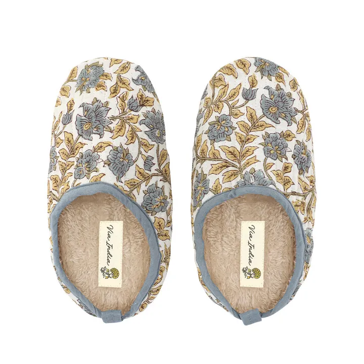 ボア付きのあったかスリッパです。 「カリーノ」は「かわいらしい」という意味。 ブロックプリントのかわいい花柄で、ボア付きのあったかいスリッパを作りました。 寒い季節の底冷えを防いでくれます。 優しい色合いに心が癒されます。 「ブロックプリント」は木版を使って、職人がひと版ひと版、手でスタンプを押すように生地の上にプリントするインドの伝統的な技法です。