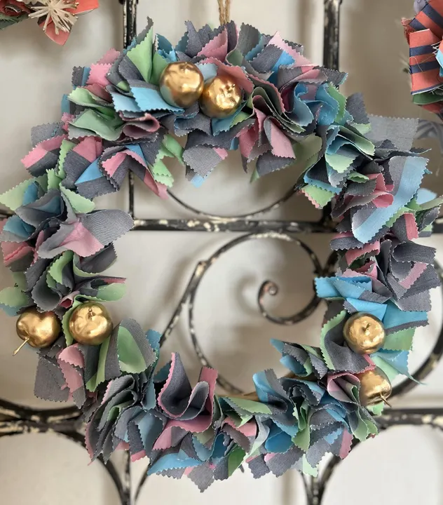 海洋ゴミから再生した布、再生した布を大切に使いたい、出来るだけゴミを出したくない、そんな思いからPORTRUNKSでは生産時に出たハギレを再利用した商品を企画しております。今回は、クリスマスに合わせハギレをラタンリースに装飾したクリスマスリース。 商品名はポルトガルのクリスマスケーキ『ボーロ・レイ』丸く中心に穴が開いているところがどことなく似ています。 1つ1つ手作りした特別なリース、是非この機会クルスマスを彩る1つとしてご利用ください。 *ベースのリースには個体差があり、更に1つ1つ手作業のため個体差が生まれます、また、ハギレを使用していますので糸ほつれがありますのでご了承ください。