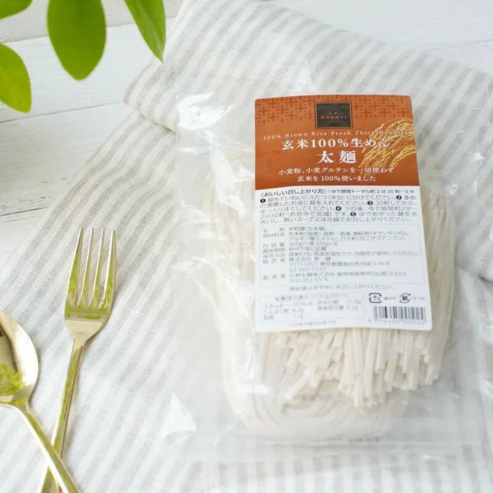 生めんならではの食感に玄米とは思えないコシ こんな方におすすめ ・身体の冷えや疲れが気になる ・小麦アレルギーだけど麺を食べたい ・玄米食品を美味しく気軽に食べたい 米粉とは思えないコシのある食感がクセになります 麵料理は年齢問わず人気ですが、小麦粉を摂りすぎることにより、血糖値が上がりやすくなったり、グルテンによって便秘の原因になったりするなどの可能性があります。 玄米を100%使用した本品は、そのような心配なくお召し上がりいただけます。打ち立ての食感にこだわったコシのある生めんで、麺通も納得の出来栄えです。 温・冷のどちらでも食用でき、蕎麦やうどん、パスタ、焼きそばと、和洋中ジャンルを選ばずにご活用頂けます。特にクリーム系のパスタやカレーうどんなどのソースが絡みやすい料理との相性は抜群です。 FEATURE 商品の特徴 ・国産コシヒカリ玄米を100%使用しており、グルテンフリーなのはもちろん、特定原材料8品目不使用、特定原材料に準ずる20品目不使用と、食物アレルギーに対応しています。 ・市販されている米粉の麺は乾麺が多いですが、食健の玄米麺は生めんタイプでありながら、常温で半年間も保存が可能です。もちろん美味しさもそのままですので、味にこだわる方にお勧めしたい、希少な玄米100%の生めんです。 ・「玄米100%の生めん(太麺)」は、ゆで時間がわずか2分(細麺は1分少々)と時短調理が可能! 家事が忙しくて時間がない時や、夏の暑い台所調理を時短で済ませたい時、子供の習い事の前にサッと一品など、忙しい場面で大活躍間違いなしの、便利で体に優しい生めんです。
