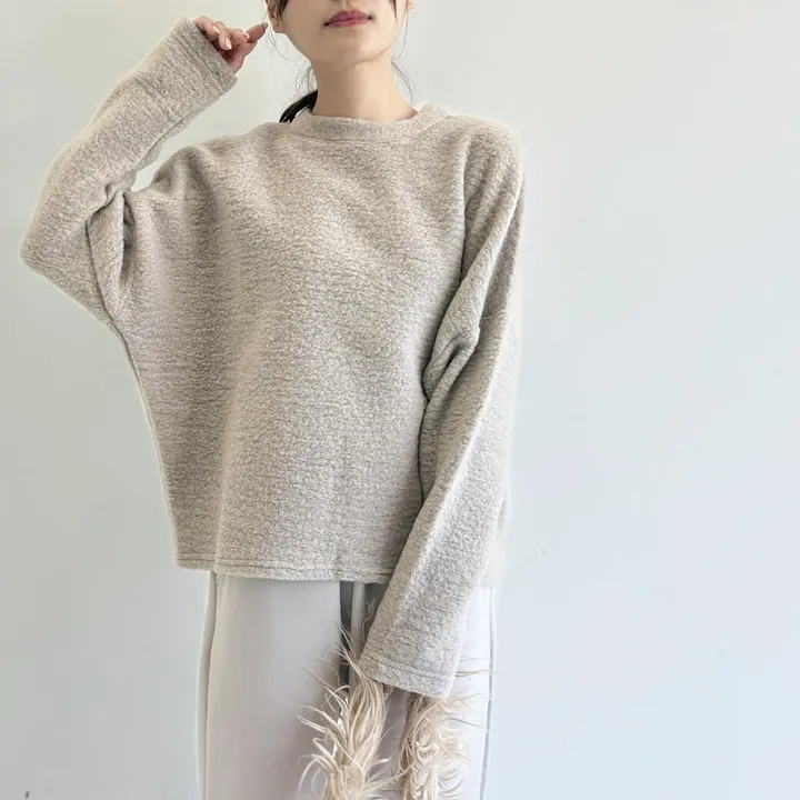 【日本製】プードルニット_ドルマンスリーブプルオーバー ベージュ