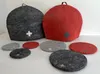 丸い形の手作りのフェルトコースター。 クロス模様部分はニードルポイント手法を使って、一つ一つ手で作られています。 フェルトで作られたコースターは柔らかく机を痛めませんし、ウールは汚れも染み込みにくいのでコースターとして最適です。手仕事のあたたかさを感じて、ティータイムが楽しくなります。 フェルトの制作はすべて手仕事で、羊毛にアルカリ性である石鹸水を含ませてもんだり巻いて転がしたりして縮絨(しゅくじゅう)させ成形します。とても手間のかかる作業です。プラスのシルエット部分は針で何度も刺し、フェルト地にからませていくニードルポイント手法で制作します。ひとつひとつ、少し違う手作り感に愛着がわいてきます。別売りのティーコゼやコースターと合わせてもかわいいです。 クリスマスプレゼントや引っ越し祝い、結婚祝いとしてプレゼントするのもおすすめです。 *お洗濯の際、多少色が出ることがありますので、平らにして乾かしてください。