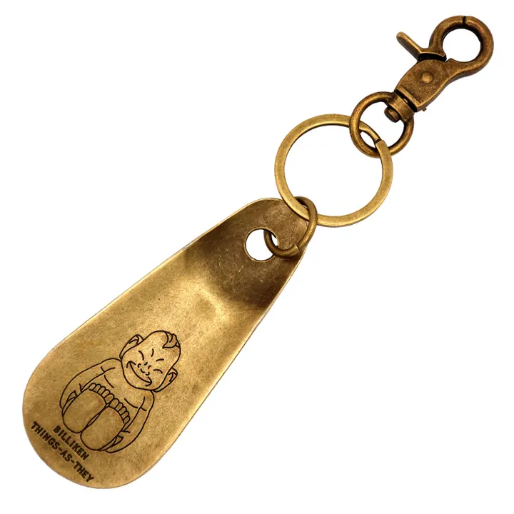 ヴィンテージなデザインとカラーのシューホーンで、普段はキーホルダーとして使用し、携行することでいつでもシューズの踵をつぶすことなくスマートに履くことができるアイテムです。