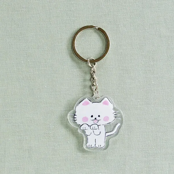 絵本作家・まんが家 えちがわのりゆきさんの絵本『たいそうするゾウ』がアクリルキーホルダーになりました! こちらは絵本に登場するねこちゃんのデザイン。おててを丸めた姿がかわいらしい♪ 鍵や鞄、ペンケースなど、好きなところにつけて癒されてくださいね。