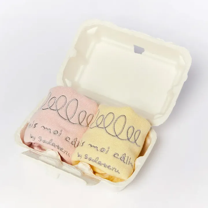 サイズ:《スタイハンカチ》18×20cm カラー:スタイハンカチ:アプリコット+バニラ スタイハンカチ:アプリコット+シトロン スタイハンカチ:ピスタチオ+シトロン スタイハンカチ:ソルベ+バニラ スタイハンカチ:ソルベ+ピスタチオ ※組み合わせの変更はできません。 名前を書くためのタグがついています。 パッケージ:たまごパックのパッケージに入ります。 パッケージサイズ:W10×D15×H6.5cm