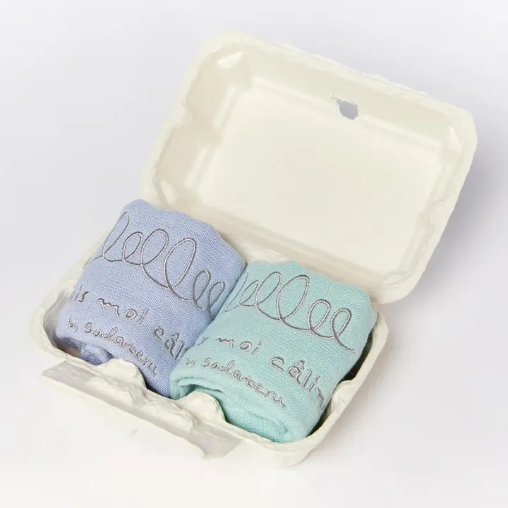 育てるタオルのベビーシリーズ『Fais moi calin!(フェモアキャラン!)』。 クリップをつけてスタイとして、そのままでタオルハンカチとして。 はじめての自分専用タオルだから、赤ちゃんの時から大きくなっても使い続けてほしいという願いを込めて。 2色セットでたまごパック型のパッケージに入っていてギフトにもおすすめです。