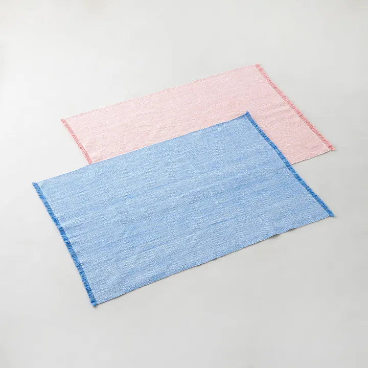 少し厚みのある生地織り上げています。 広げてラグマットや二重にしてバスマットとしても お使い頂けます。