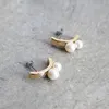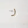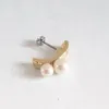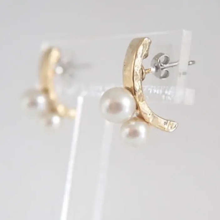 ピアス【Vintage】/メタル×2粒パールピアス アンティークとモダン、フォーマルとデイリー 偏りすぎないミックステイストの表情がたのしめるパールアイテム 特別な日にもかしこまりすぎず、普段の生活にも頼れる存在の ひとさじのアクセントを効かせたパールが主役のイヤリングとピアス。 Oucaでも定番の素材であるパールは、初めてのチョイスとなるガラスパール。 淡水パールや貝パールとはまた異なる、きれいなフォルムでありながらどこかヴィンテージ感の漂う落ち着いた風合いは パールだけれどきれい目になりすぎない、どこかリラックス感の漂うムードで普段使いにもぴったり。 艶やかなガラスパールに合わせた表面感のあるメタルパーツは 全く別の性質でありながら、組み合わさるとそれぞれを引き立てあい特別感ある佇まいに。 凛とした上質さを醸しながら、日常の暮らしの中で気軽に取り入れていただけるようなラフな雰囲気も織り交ぜた、 シーンに合わせて様々な表情をお楽しみいただけるひとしなです。 ◆詳細◆ 均等に丸く美しい艶を放つガラスパールと、ハンドクラフトの質感を残した金属のコンビネーションが特徴的なピアス。 程よいボリュームのメタルパーツにいつもより少し大粒の5mmと6mmのサイズ違いの2粒を用いることで、 きれい目な印象の中にもラフさをプラスしました。 ベースとなるアーチ型のメタルパーツ部分は、パールとのバランスと様々な角度からの見え方を考え一から作成したOucaオリジナルの原型。 少し角ばった面を残したこだわりのフォルムは横から見た印象も凛として美しく 心地よいボリューム感と艶やかな金属の表情にパールで華やかさを添えながら、耳元に上品に収まります。 イヤリングタイプ(EN139)もございます。 商品には専用のBOXが無料で付属しますので、ギフトにも最適です◎