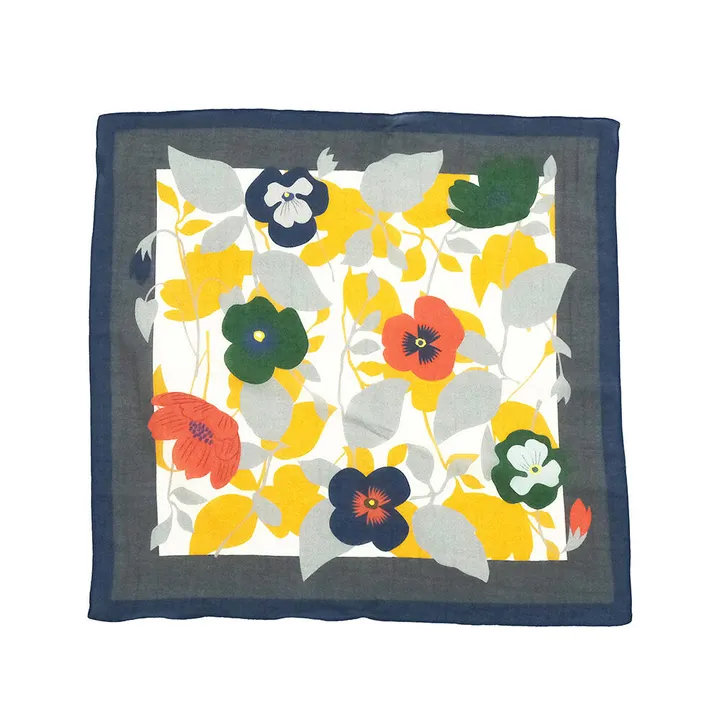 スカーフ┃ショートサイズで首元に巻きやすいコットンシルクのスカーフ(アネモネとパンジー) NV(ネイビー)