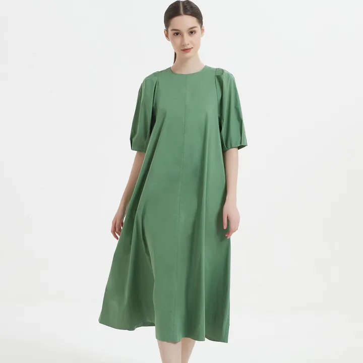KNNO330パフスリーブAラインコットンロングワンピース APPLEGREEN/M
