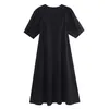 KNNO330パフスリーブAラインコットンロングワンピース BLACK/L