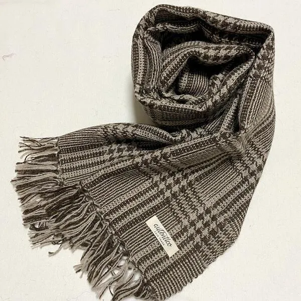 手織りアルパカのグレンチェックマフラー(幅約30センチ、長さ約176センチ) ブラウン×ベージュ
