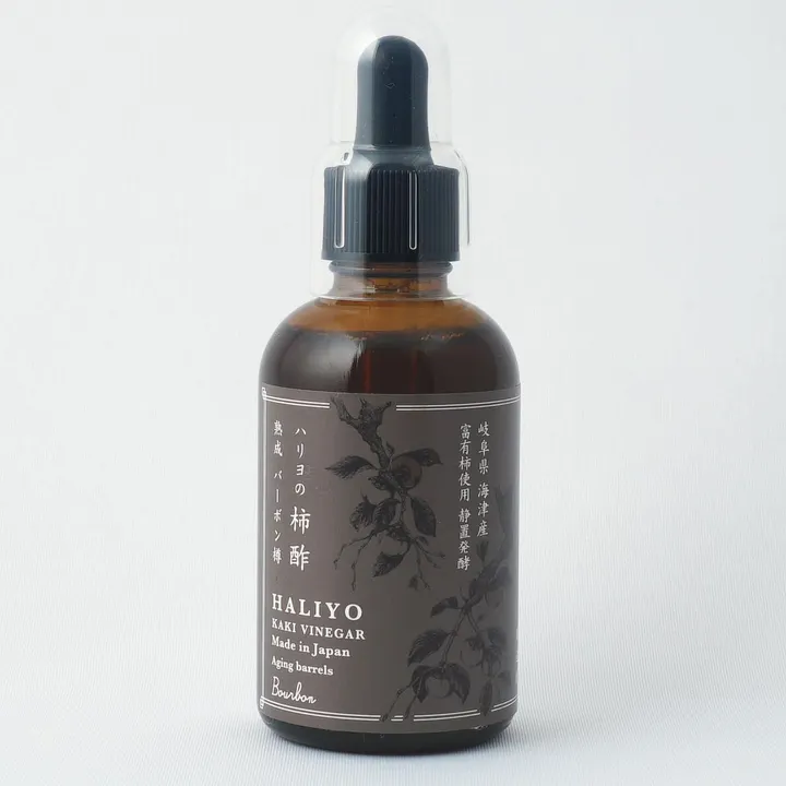 岐阜の湧水で育つ富有柿を、自然酵母と蔵付き酢酸菌で、静置発酵・熟成させたハリヨの柿酢。深い旨みとやさしい酸味、そして他の果実酢にはない優れた健康成分も魅力です