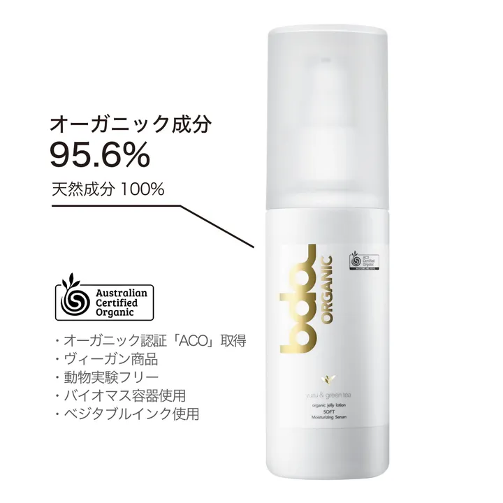 【ヴィーガン商品】オーガニック ジェリーローション ソフト モイスチャーセラム ユズ&グリーンティ100mL(水溶性潤滑ゼリー)