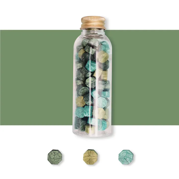 <パッケージ> PETプラスチックボトル <容量> 一瓶に約90個のワックスビーズ 入り、1回のスタンプで3-4個を使用します。