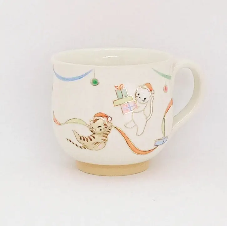 京焼・清水焼のマグカップ 京もの認定工芸士が手描きで仕上げました。 ○○部分が表面より飛び出て立体的になっている’’ぷっくり’’シリーズです。 手作り、手描きのため、形や大きさ、絵柄など、写真のものと若干異なる場合が あります。 予算やデザイン(オリジナル商品やOEM商品)、数量など、ご相談の上、依頼者様のご希望に添った作品を製作いたします。 サイズ 口径:85㎜ 高さ:80㎜