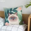 人気商品【在庫特価】クッションカバー『MEWJIミャオジ』猫&花<猫、ネコ、ねこ>☆インテリア 5点まとめ買い|※色選び可能(発注時チャットにて欄にてご連絡ください)5点セット