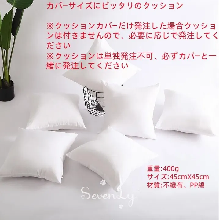 オプション:無地白クッション(400g、45㎝*45㎝)※単独発注不可、必ずカバーと一緒に発注してください。