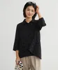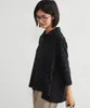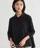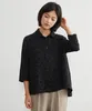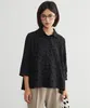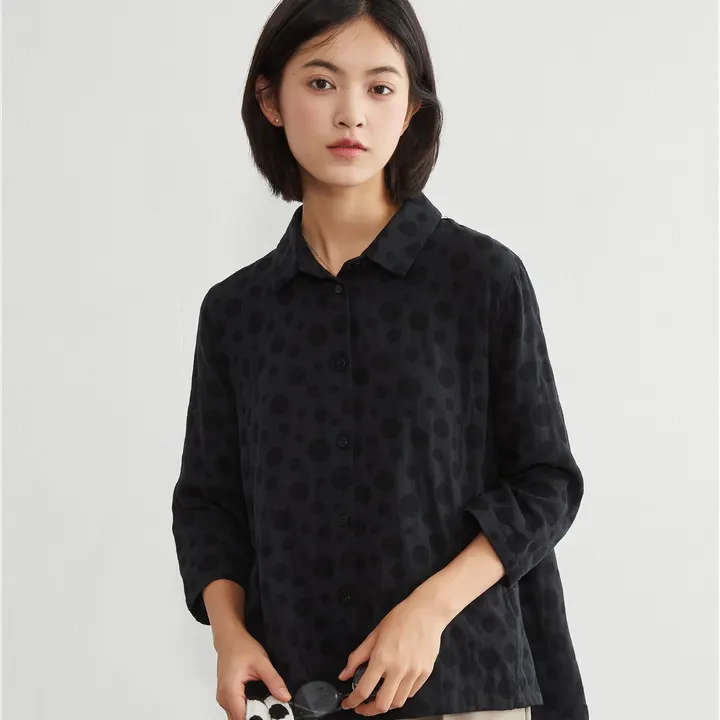 KNXC409-ドット柄ダブルガーゼ・7分袖コットンシャツ・ルーズフィットブラウス BLACK-FREE