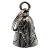 アメリカ製ガーディアンベル社製ガーディアンベルです。 MADE IN USA アメリカ製 交通安全 魔除け 御守り ガーディアンベル アメリカのライダーの間には、事故や、転倒の原因は「道路にひそむ悪魔」によるいたずらだという伝説があります。悪魔は走る者に悪戯やトラブルを運んできます。このベルは美しい音色で悪魔たちを追い払うと言われ愛されています。そんな悪魔のいたずらを防ぎ、御守りとなるのが、守護者のベルという意味を持つガーディアンベル。 日本でも鈴の音(ね)は神道では魔除けの音と言われています。ピューター製の鈴でいい音色でガーディアンベルはデザインも様々あります。 またガーディアンベルにまつわる伝説として、プレゼントとして送られたベルの効果は、自分で手に入れたものの2倍になると言われています。 それゆえに彼氏・彼女・友達・家族へのプレゼントとしての人気も非常に高まっています。 シルバーアクセサリーのようにおしゃれに装着できて素敵な音色を奏でるガーディアンベル。 バイカー以外にも自転車や旅・交通安全のお守りとしてお使いいただけます。 カバン・ランドセル・キーホルダー・ペットの首輪等に付けてお使いください!! ※タイラップ等でバイクのフレームにも簡単に取り付けできます。 アメリカンモデルだけではなく、旧車ファン、レプリカライダーまで、さらにバイクだけでなく、自転車や車にもピッタリな御守りとなっています。 アクセサリーとしても人気で、アイディア次第で車体だけでなく、キーホルダーや鞄など、どこにでも付けておしゃれに楽しめます。