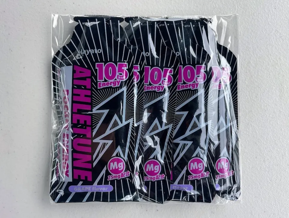 スポーツシーンにおいて飲み心地にこだわった独特なゼリー状エネルギー補給食。体脂肪をエネルギーに変える中鎖脂肪酸(MCT)と、マグネシウムを25㎎配合。1本あたり105kcal。
