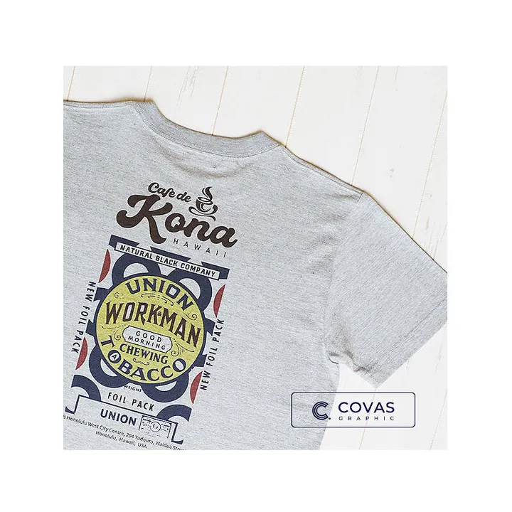 ユニセックス・半袖プリントTシャツ "カフェ・ド・コナ" 杢グレー デザインTシャツ 301554-14 size: S