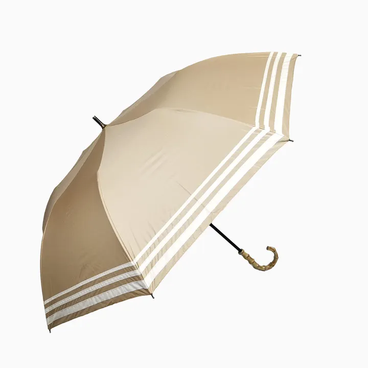 日本政府 推奨商品 ショートワイド傘 竹手元 マリンボーダー 晴雨兼用 UVカット&完全遮光 遮熱 27393 ベージュ