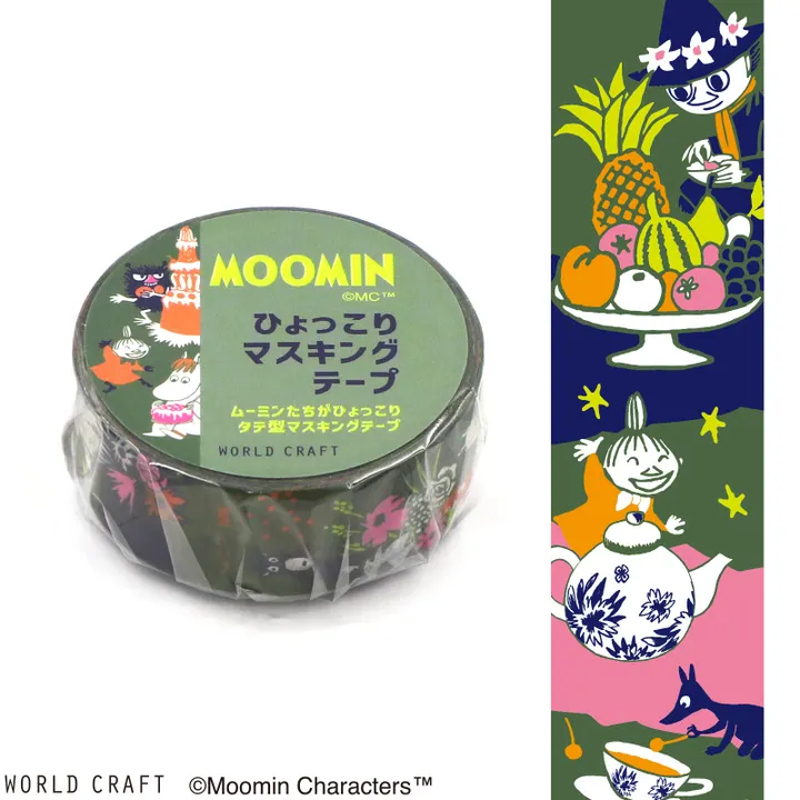 【ムーミン マスキングテープ ケーキ グリーン】 ◎ムーミンたちがひょっこり!珍しいタテ型のマスキングテープです。 ◎色鮮やかなスペシャルカラー仕様で、  ひょっこり覗くムーミンたちが手帳やノートをにぎやかにしてくれます♪   --------------------------------------------------------------------------------------- ◇◇ 横からひょこり日常を覗く 『ムーミンひょっこり stationeries』 ◇◇ ムーミンの世界に広がる木や花々からひょっこり飛び出すムーミンとなかまたち♪ そんなムーミンたちが私たちの日常を彩るステーショナリーシリーズが登場!! ◇◇ ムーミン商品ラインナップ ◇◇ ☆新商品☆ ■フィルムインデックスシール第2弾(5柄) < ムーミン / リトルミイ / スナフキン / ニョロニョロ / スティンキー > ☆新商品☆ ■フェイスシリーズ フレークシール(4柄) < ANGRY / HAPPY / ENNUI / THINKING > ☆新商品☆ ■フェイスシリーズ シートシール(4柄) < ANGRY / HAPPY / ENNUI / THINKING > ■マスキングテープ(8柄) < ボーダーピンク / ボーダーグリーン / ボーダーブルー / まるパープル /   森 グレー / ケーキ グリーン / フラワーブルー / フラワーオレンジ > ■フィルムマスキングテープ(8柄) < Woods / Garden / Grass / Going  /   Flower ライトグリーン / Flower ブルー  / Flower クリア / Flower パープル > ■キラキラフレークシール第1弾(8柄) <ムーミン / リトルミイ / スナフキン / Sのおじょうさん /   ミムラねえさん / トゥーティッキ / ニョロニョロ / スティンキー> ■キラキラフレークシール第2弾(8柄) < ムーミンとSのおじょうさん / リトルミイときょうだい / ムーミンとスナフキン /   ムーミンPとムーミンママ / ともだち / ニョロニョロ2 / スティンキーとスニフ /   Kユールとスクルッタ> ■養生テープ(4柄) < 森 / 草原 / 原野 / 雲> ■フレークシール(8柄) < 森とムーミンA / 森とムーミンB / ムーミンパーティーA / ムーミンパーティーB /   なかまたちA / なかまたちB / ミイがいっぱい / シルエット >        ■フィルムインデックスシール第1弾(2柄) < しかく / まる > ■ペーパーインデックスシール(2柄) < おおきい / ちいさい > ■リングノート(2柄) < 森 / ボーダ > ■メモパッドA7(2柄) < 木グリーン / いたずらピンク > ■箱シリーズ  ・A4サイズ(ぶどう畑 / はな )  ・カードサイズ(はなつみ / さんぽ / さがしもの / 釣り )  ・プチサイズ (ファミリー / リトルミイとミムラねえさん /            スナフキンとニョロニョロ / ムーミンとSのおじょうさん )  ・ポストカードサイズ(森 / 読書 / さかだち / みずうみ ) ■什器セット などを出品しておりますので、そちらのページもご覧ください♪