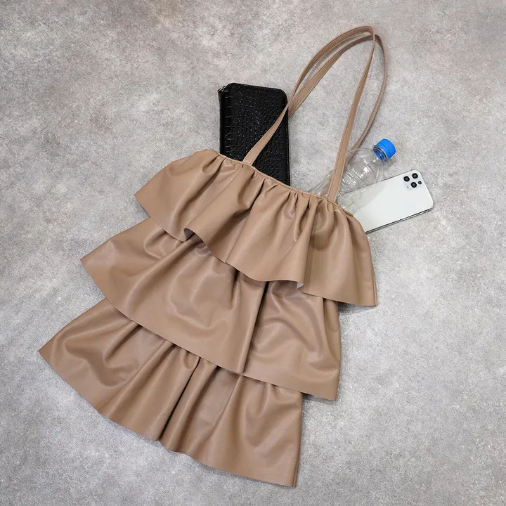 フリル合皮トート ベージュ