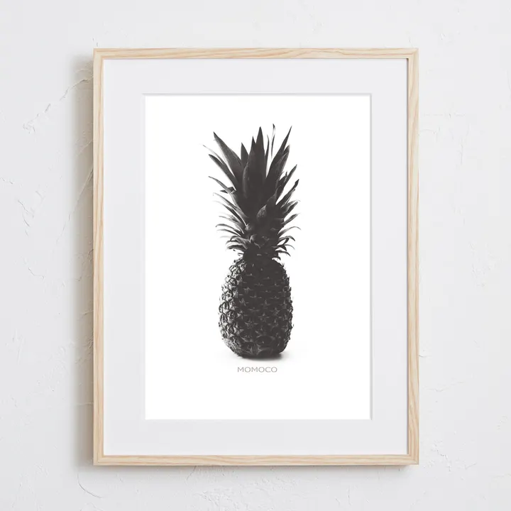 【現代アートポスター】ブラックパイン Black モノトーン パイナップルイラスト A4(S) フレームセット:無垢 30.4×39.4cm