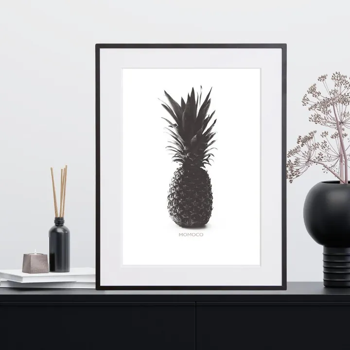 【現代アートポスター】ブラックパイン Black モノトーン パイナップルイラスト A4(S) フレームセット:黒 29.4×38.4cm