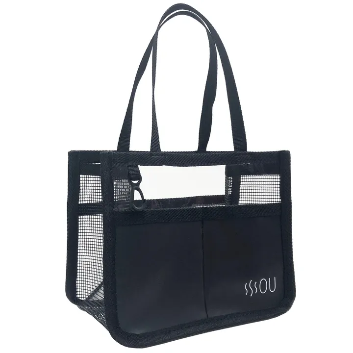 スパやサウナ、温泉にも最適です。メッシュの窓付きで中身が一目でわかり、化粧品やアクセサリーなどの小物を整理整頓できます。ブラック色なので、汚れも目立ちにくく、手入れも簡単です。軽量で持ち運びも楽々、旅行やジムの行き帰りにも便利なアイテムです。ジムやスパ、旅行に最適なコンパクトなバッグをお探しの方におすすめです。