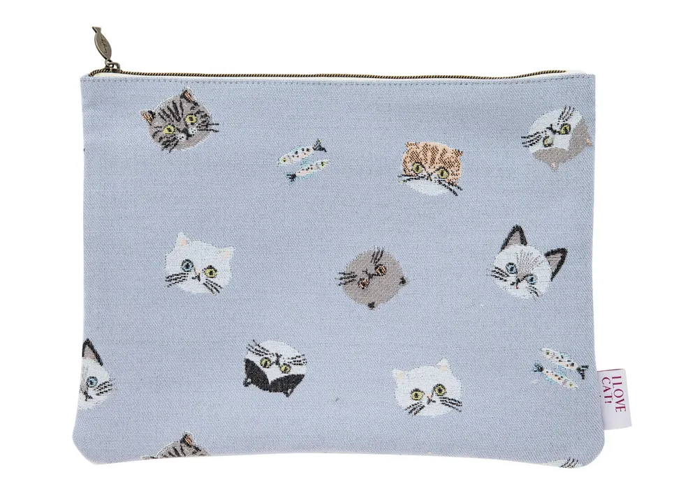 「ネコ好きさん、しゅうごーう!」 ネコ好きさんへ贈る、ネコまみれのシリーズが登場! ネコを愛してやまない方に、おすすめしない訳にはいきません。ネコ愛溢れるアイテムたちです。 『hungry...』と書かれたお魚の引き手チャームがワンポイントになったマルチポーチ。 フラットな形状を生かして、iPadやノートパソコンの持ち運び用に◎ 内ポケットには充電ケーブルやタッチペンなどのアクセサリー類を入れることができます。 B5サイズ程の書籍も入りますので、仕事にも学校にも大活躍します。 他のアイテムとセットにしてネコ好きさんへの贈り物にいかがですか?