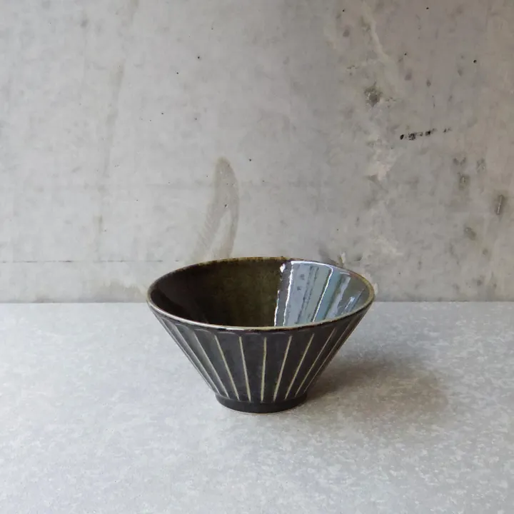【軽量のうつわ】しのぎ反りどんぶりS 織部