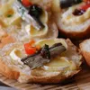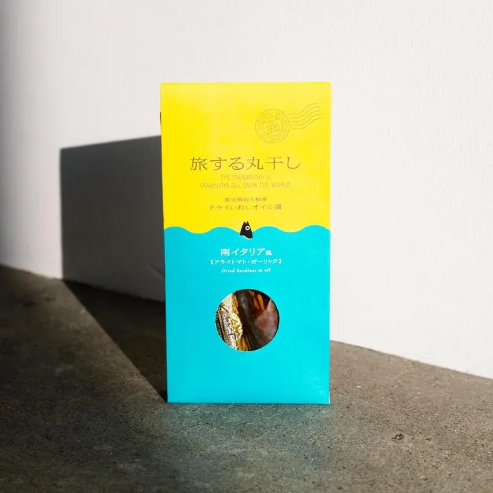 老舗の干物屋がたくさん残っている全国でも珍しい町、鹿児島県阿久根市。 この港町で漁師たちが朝方4時から6時に獲ってくる「ウルメイワシ」は、おなかの中にエサが残っていないので苦みが少なく、食べやすい干物になります。 お酒のアテのイメージが強い丸干しですが、時代の流れと共にライフスタイルも変わり、今では食卓で丸干しを見ることは随分なくなりました。 それでも「丸干しの良さを守りたい」と、朝どれの美味しい丸干しを世界の国々の味をイメージしたオイルに漬けました。 南イタリア、プロヴァンス、マドラス、阿久根…まるで日本の丸干しが世界をわたり歩いているような風味が丸干しの旨味と共に口の中に広がります。 創業昭和14年の下園薩男商店が提案する干物の新しい形です。 製造は手作業。じっくりと干され旨みが凝縮した丸干しは、より食べやすく頭としっぽを切り、一尾一尾製造スタッフが丁寧に瓶の中に詰めていきます。少しでも力の加減を間違えるとほろりと崩れてしまう丸干しを傷つけることなく、隙間なく瓶に整然と詰めていくのは一朝一夕でできることではありません。美味しい丸干しをより多くの人に知って食べてもらい、手に取ってくれるお客様の豊かな生活の一つに加われたら。そんな想いと共に丁寧に一尾ずつ詰めています。 ~南イタリア風~ 南イタリア風は、ドライトマト、フライドガーリック、唐辛子、黒こしょう等を入れた、南イタリアを感じさせるようなピリッとスパイシーな味付けで、幅広い層に人気のある商品です。 パンやパスタとの相性はもちろん、ビール、ワインにも合い、さまざまな料理に使用できます。 時間を問わず、メインにも軽食にもおつまみにも。 風味豊かなオイルは、オイルパスタやドレッシング、ソースなどに使っても美味しく召し上がれます。 ※写真は盛り付けイメージです。丸干し以外の食材等は販売物に含まれません。 ~活用レシピ~ ●丸干しパスタ フライパンに丸干しのオイルと瓶の中のドライトマト、鷹の爪、丸干しを入れて炒めます。パスタのゆで汁を適宜加えてソースを作り、パスタに絡めて完成です。塩味はお好みで。 ●旅するブルスケッタ フランスパンに切った丸干しをのせ、お好みでチーズやプチトマトをのせます。トースターで焼きあげたら仕上げに瓶のオイルをかけて完成です。 ●旅するカナッペ クリームチーズと丸干し、オイルをフードプロセッサーにかけ、フランスパンに塗ります。丸干しとハーブをトッピングして完成です。