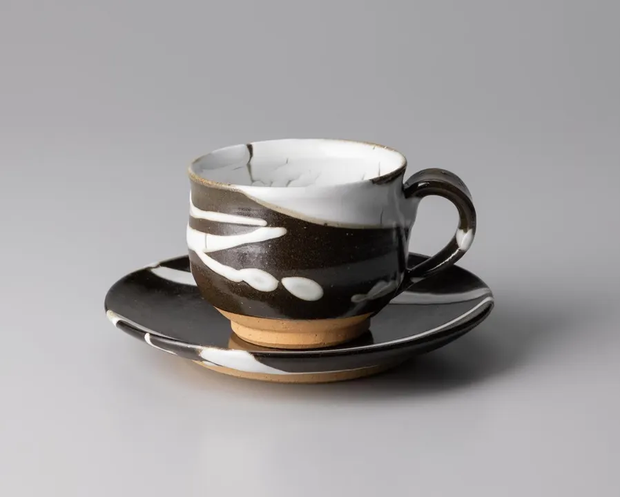 珈琲の色が綺麗に映えるカップです。 持ちやすい太めの持ち手の珈琲カップです。 紅茶にもお使いいただける型です。プレゼントにも喜ばれる逸品です。 龍の爪痕のような梅花皮(ちぢれ模様)はそれぞれに違い、同じものは出来ません またサイズや重量も個体差がある事をご了承ください ※電子レンジ・オーブン・食洗機 お使いいただけます