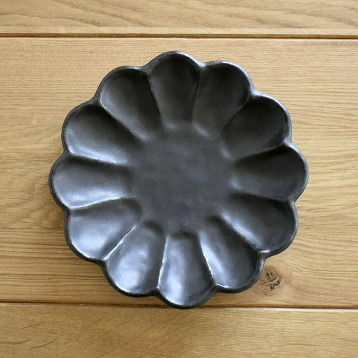 上から見ると花が咲いたようでとても華やかな器。それでいて暖かみあるやさしい色合いで、和洋問わずお使いいただけます。表面は少し起伏を持たせたでこぼこした作りで、手にしっくりと馴染みます。土物の器に見えますが、実は磁器製でとても丈夫です。普段使いからおもてなしまで幅広く活躍しそうです。シリーズでお使いいただいても単品使いでも、食卓に華を添えてくれそうです。