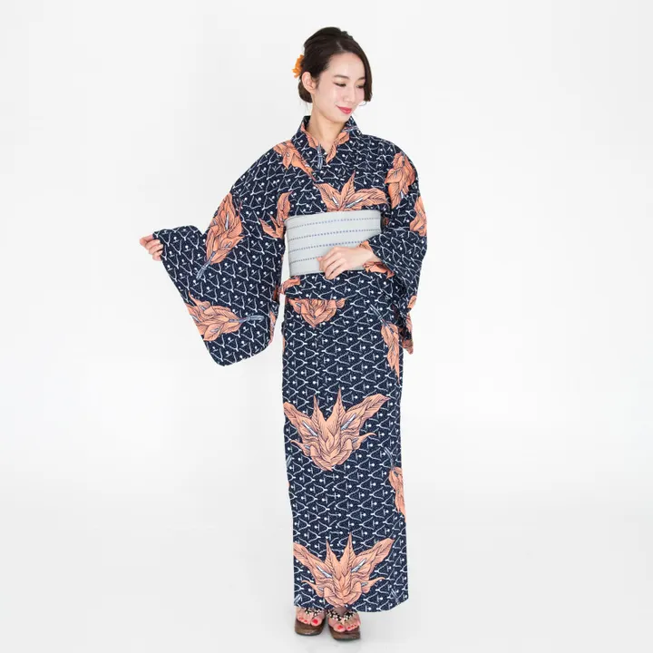 モデル :170cm (おはしょりにより丈を調節) 素材 :コットン100% 身長目安:153〜170cm 着物丈 :約163cm 袖丈 :約49cm 裄丈 :約68cm