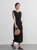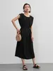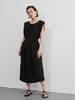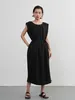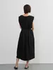 KNXO402-パワーショルダー・ワイドショルダー・タックワンピース・ベルトマーク・ノースリーブ BLACK/FREE