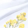 背中の刺繍は今回のコレクションテーマである花の黄色いスターチスがモチーフ 5色の刺繍糸によって表現したオリジナルの刺繍図案と色配色。 色違いの黒とも違う配色の刺繍がされています。 他の品番とも違い、プルオーバースエットの生地感に合わせた仕上がり。