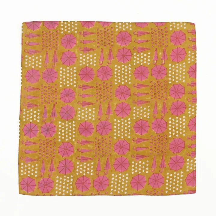 雨と傘 ブロックプリントのハンカチ* PK(ピンク)