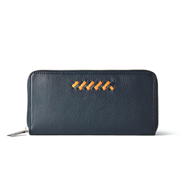 【リーヴァ】 ラウンド長財布 ネイビーブルー(セッカモチーフ)